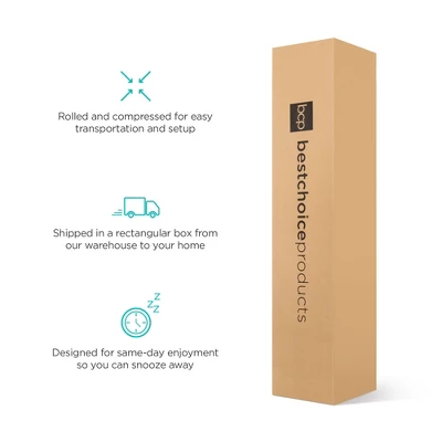 Discover the sleep you deserve with a 10-inch-thick memory foam mattress designed to hug your body into deep slumber while alleviating your pressure points. Double layered, naturally hypoallergenic memory foam offers a unique balance of comfort and firmness while an 8-inch-high density foam base helps relieve body-aches and maintain an ideal sleeping position. With motion isolation, memory materials absorb and contain vibrations so any movement on one side of the bed won’t affect the other. Get a full-nights rest delivered conveniently, rolled, and compressed for easy transportation and setup and shipped in a rectangular box from our warehouse to your home. This bed is designed for same-day enjoyment so you can snooze right away on a 60-inch-wide mattress from heaven.