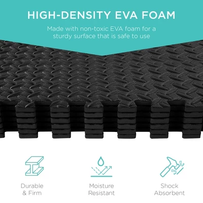 Keep your floors safe from dents and scratches when you work out on a 3/8-inch mat and start your fitness journey with an all-around accessory that lasts. Made with non-toxic EVA foam for a sturdy surface that is safe to use, moisture resistant, and shock absorbent. Lightweight tiles interlock neatly and quickly for a customizable setup, while removable edges allow for a clean look in any room including the garage, home gym, play room, and pet area.