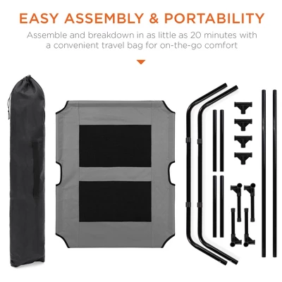 Give your pets the best while saving on space. A simple, complementary design fits in any room or outdoor setting while a raised, 4-leg design lifts your pet 8 inches off the ground to circulate & cool the air beneath them. Breathable nylon mesh disperses heat while the removable canopy blocks sunlight, giving your pet a cool resting surface. All of these cooling features slow the growth of pet odors and stains. Best of all, your pets will never be without a resting place; assemble and breakdown in as little as 20 minutes with a convenient travel bag for on-the-go comfort.