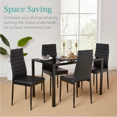 - GLASS TABLETOP: Modern and sophisticated, this 5-piece set includes a table with a glass top for an elegant touch and smooth surface to place food & drinks