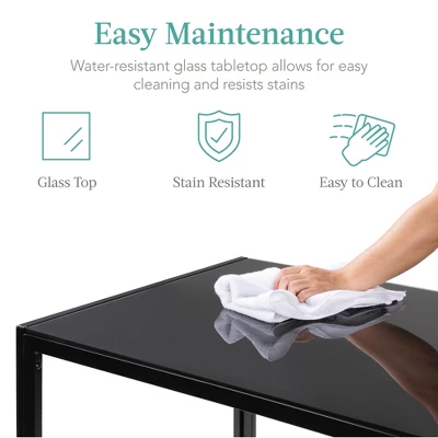 - EASY MAINTENANCE: In the case of spills, the water-resistant, glass tabletop allows for the easiest cleanup possible; simply wipe them up in just seconds!