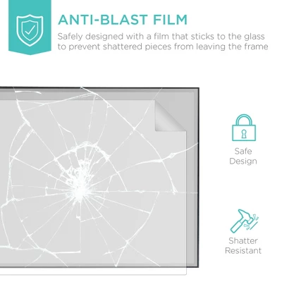 - ANTI-BLAST FILM: In the case of this mirror shattering, safety is made a priority with a anti-blast film that sticks to the glass so broken pieces remain in place; OVERALL DIMENSIONS: 65″(L) x 22″(W)