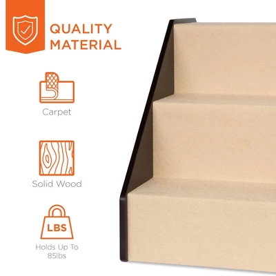 - QUALITY DESIGN: Your lovable companion deserves the best, made of MDF and solid wood to support up to 85 lbs. and carpet steps to protect your pet from slipping as they climb up