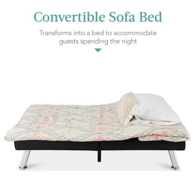 - QUALITY DESIGN: Durably crafted with tufted faux leather and 4 chrome metal legs, this convertible futon sofa fuses comfort and style that will last in your living space for years to come